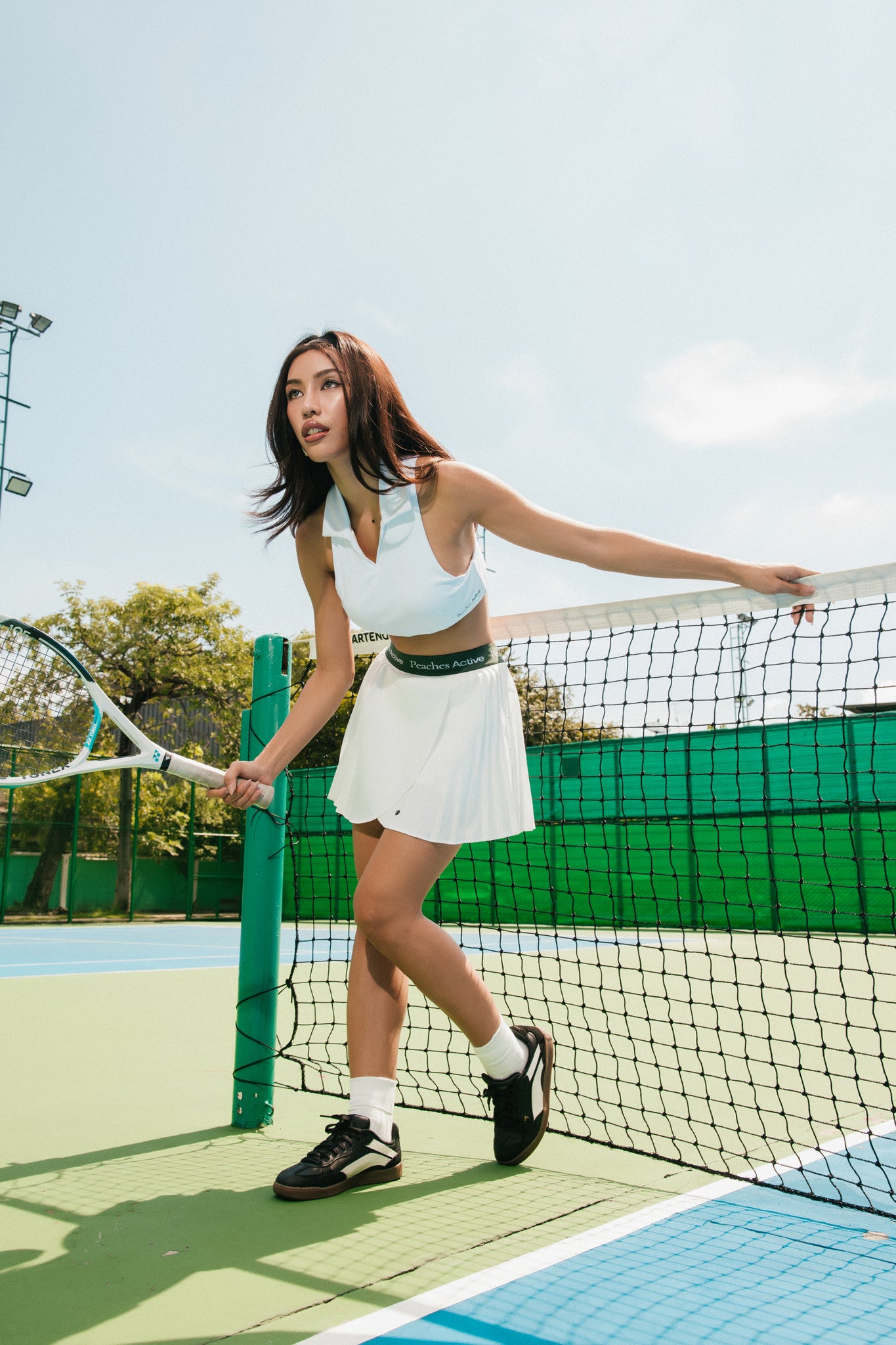 Classic tennis style meets modern activewear. The Bra Top with Collar isetails a polo-inspired collar with a supportive sports bra fit. Designed to contour the body while offering comfort and flexibility, this piece is perfect for tennis, golf, or elevated everyday styling.